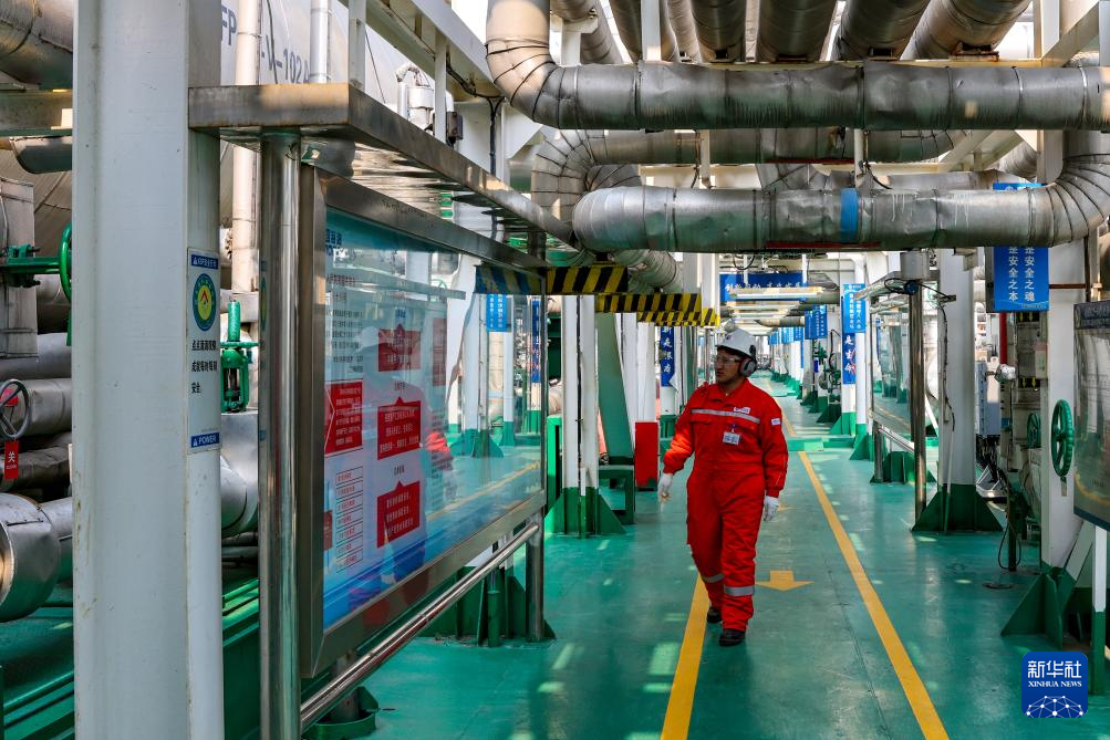 強巴在秦皇島32-6油田“渤海世紀號”(FPSO)16萬噸級浮式生產儲油裝置上(3月7日攝)。新華社記者 姜帆 攝