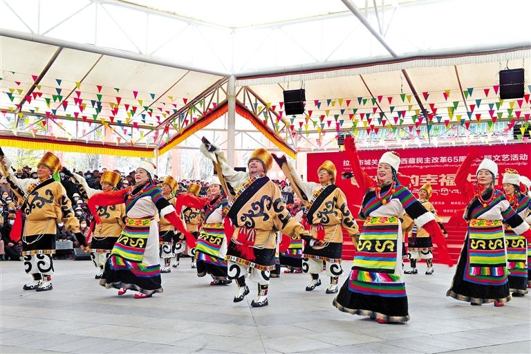近日,拉薩市堆龍德慶區(qū)德慶鎮(zhèn)舉行“中華民族一家親 同心共建新德慶”紀(jì)念西藏民主改革65周年文藝匯演活動(dòng)。活動(dòng)在藏戲《扎西雪巴》中拉開帷幕,臺(tái)上的演員激情表演、臺(tái)下的觀眾跟隨旋律一同吟唱,歌曲、舞蹈、模特走秀等精彩節(jié)目輪番上演,為大家?guī)?lái)了一場(chǎng)精彩紛呈的視聽盛宴,表達(dá)了農(nóng)牧民群眾對(duì)黨、對(duì)祖國(guó)的深深熱愛和美好祝福。(記者 洛桑旦增 達(dá)珍 永青 萬(wàn)靖 曲珍 格桑倫珠 桑鄧旺姆 拉巴桑姆 見習(xí)記者 卓瑪七林)
