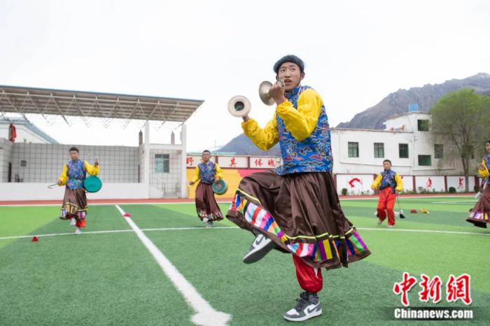 西藏加查縣中學(xué)學(xué)生在練習(xí)非遺昌果卓舞。貢嘎來(lái)松 攝