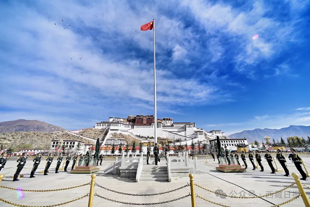 日喀則市舉行紀念西藏百萬農奴解放65周年升國旗儀式。