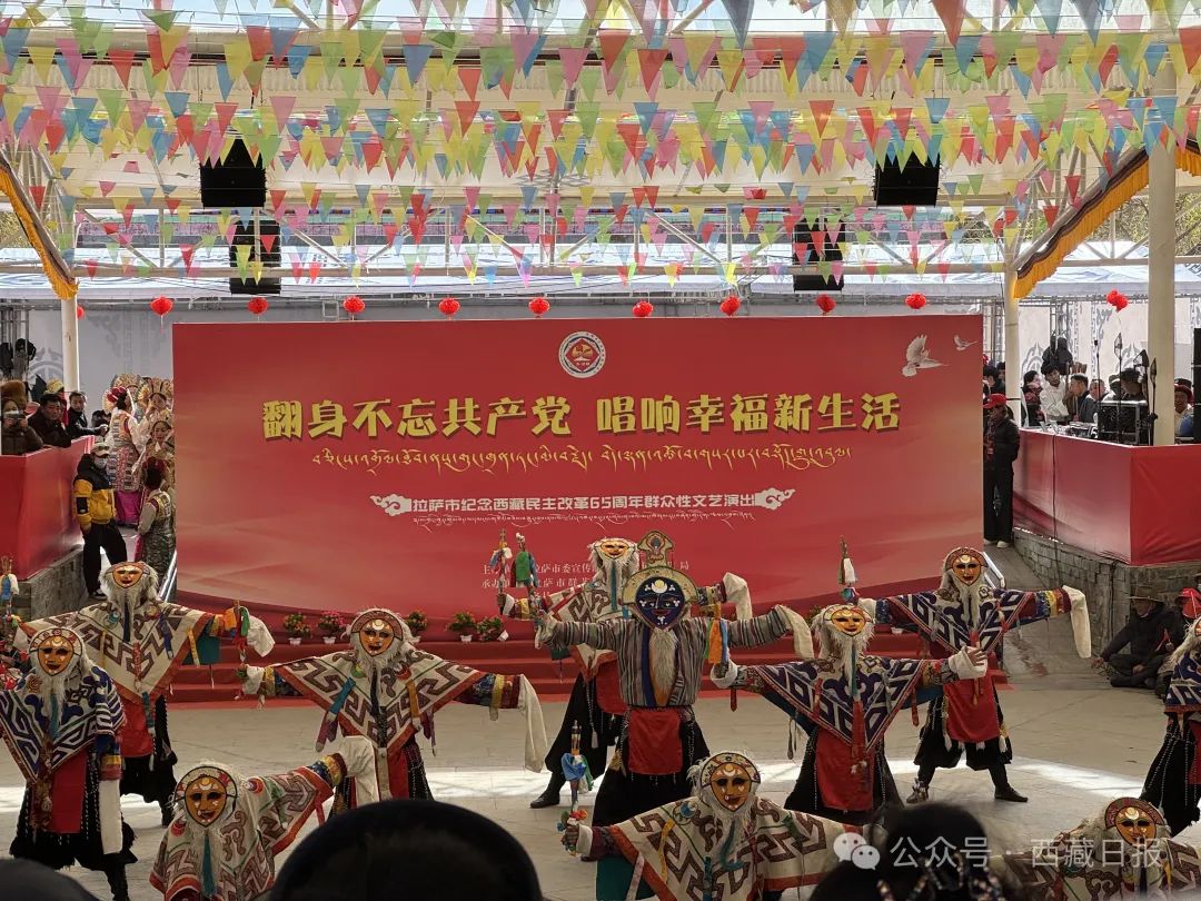 拉薩市紀念西藏民主改革65周年群眾性文藝演出在宗角祿康公園舉行。