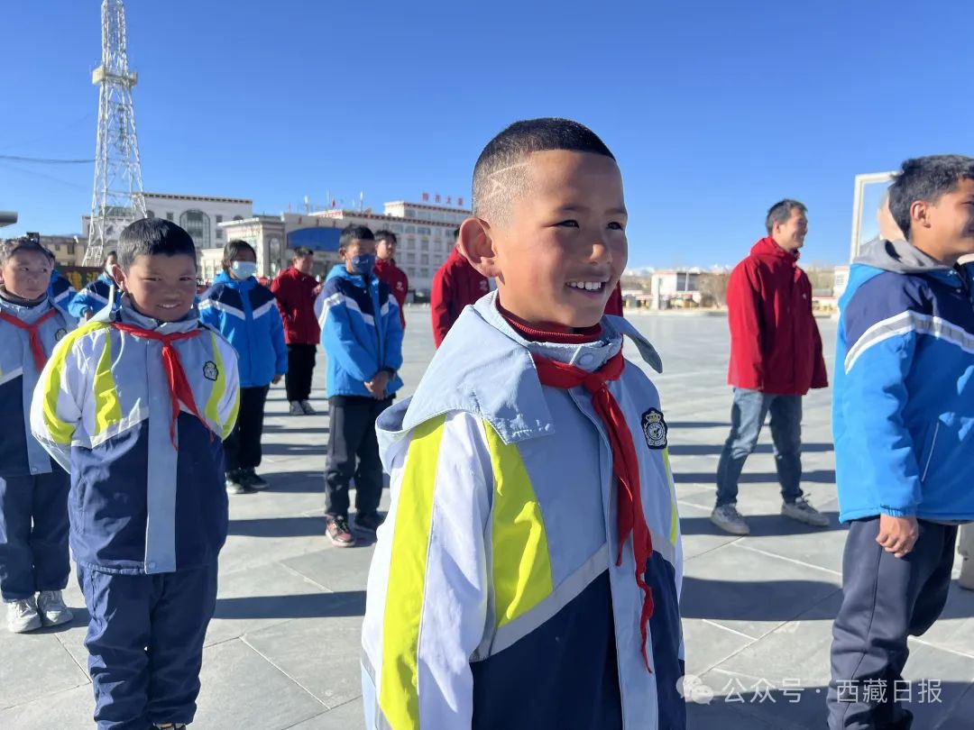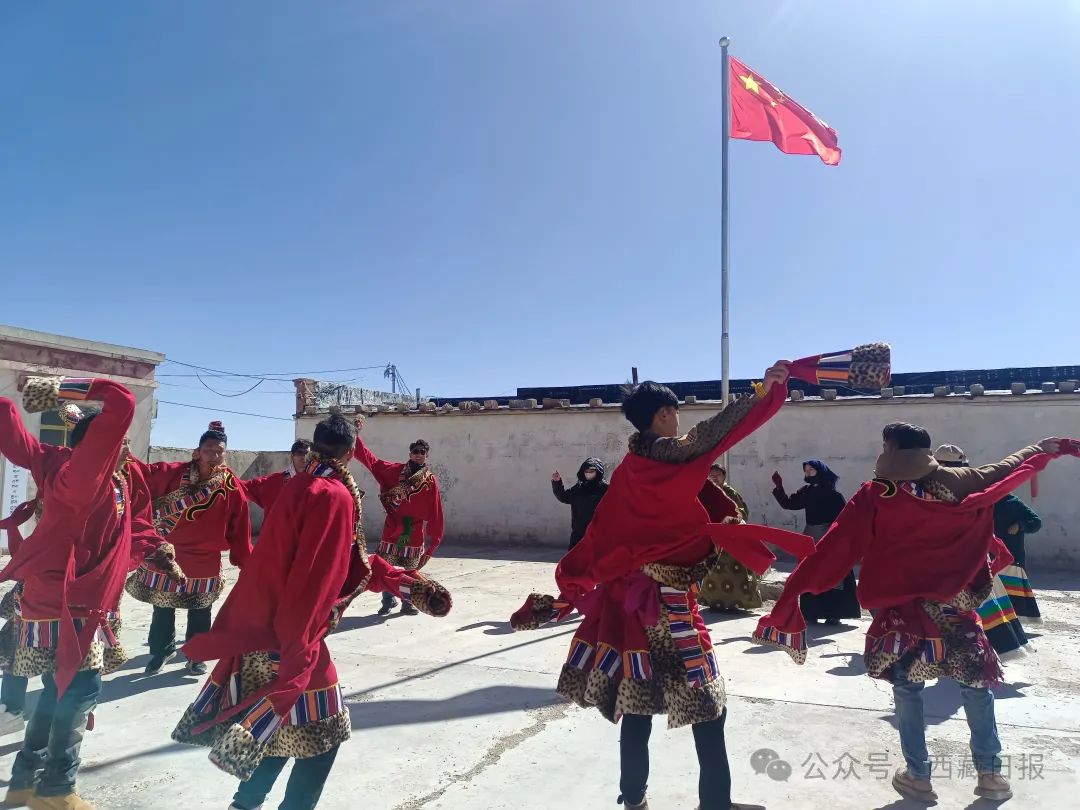 日喀則市薩迦縣麻布加鄉(xiāng)舉行“叫我們怎么不歌唱”紀念西藏民主改革65周年升國旗唱國歌儀式。