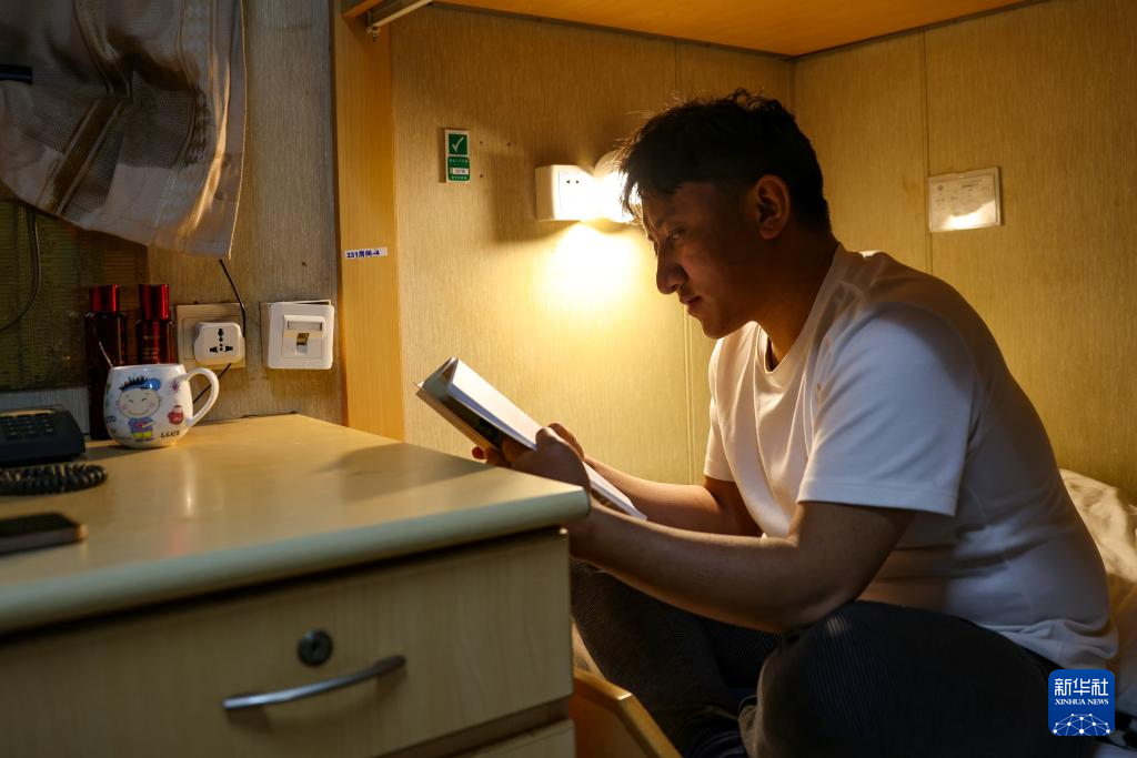 這時(shí)的“渤海世紀(jì)號(hào)”已經(jīng)覆蓋了網(wǎng)絡(luò),強(qiáng)巴可以隨時(shí)和家人聯(lián)系,親人們的鼓勵(lì)和同事們的關(guān)心給了他堅(jiān)持下來的力量。工作的第一年,強(qiáng)巴大部分空閑時(shí)間都用來學(xué)習(xí),提高專業(yè)技能,趕上同事們的步伐。他也漸漸適應(yīng)了海上的生活,還在船上的健身房鍛煉身體?,F(xiàn)在,他更喜歡閱讀?!拔艺跍?zhǔn)備中級(jí)操作工資格的考試,空閑的時(shí)候在讀藏語版的《哈佛凌晨四點(diǎn)半》,很勵(lì)志?!彼f。