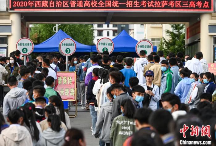 2020年7月7日,拉薩三高考點外,考生有序排隊進(jìn)入考場。何蓬磊 攝