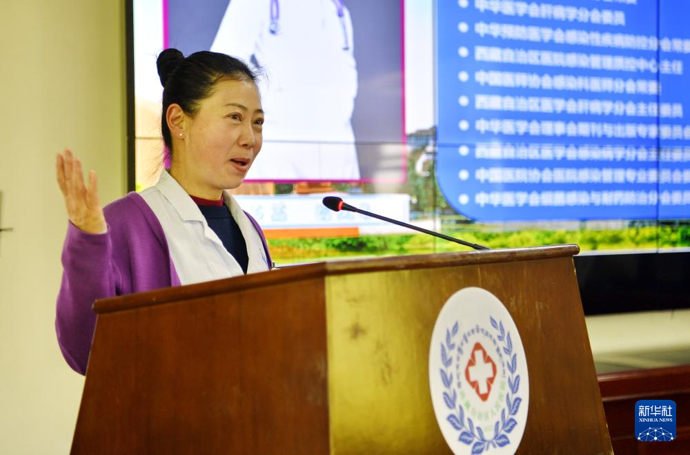 4月3日,北京協(xié)和醫(yī)院主任醫(yī)師龍笑在西藏自治區(qū)人民醫(yī)院做學術報告。新華社記者 張汝鋒 攝