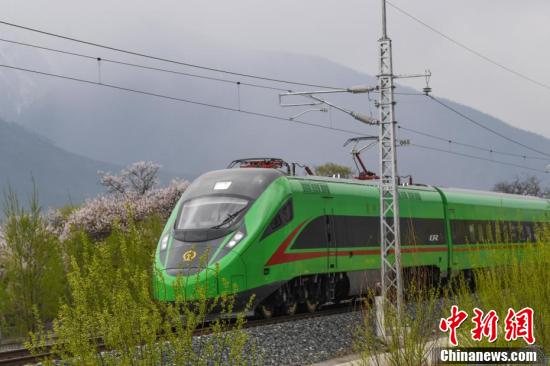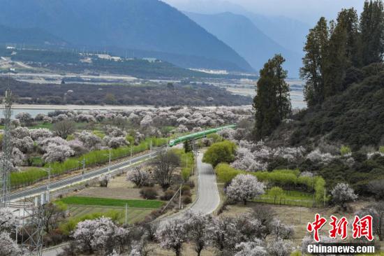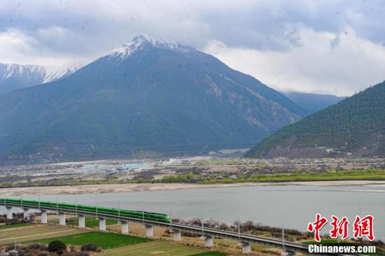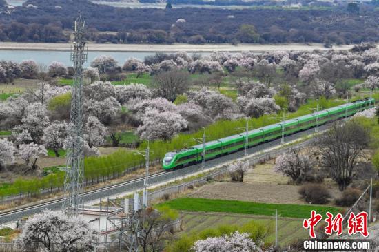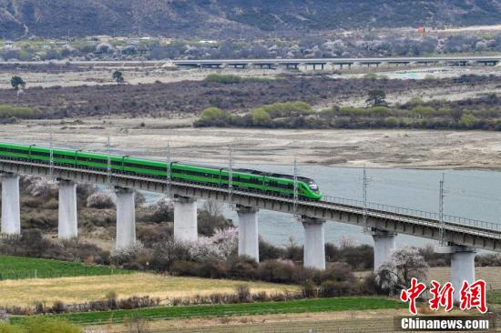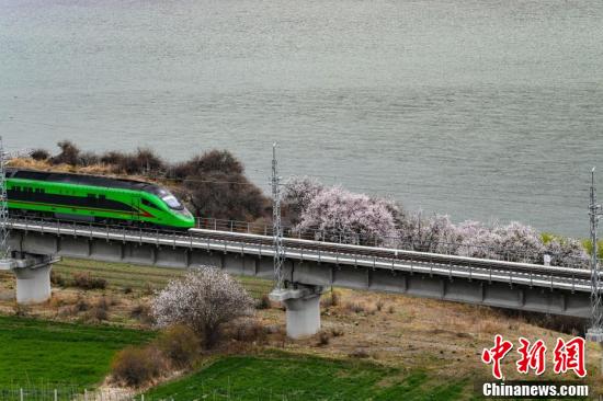 據(jù)悉,拉林鐵路是一條連接西藏拉薩市與林芝市的國(guó)鐵Ⅰ級(jí)單線電氣化鐵路,全長(zhǎng)435公里,設(shè)計(jì)時(shí)速160公里,于2021年6月25日開(kāi)通運(yùn)營(yíng)。圖為穿梭在桃花林中的拉林鐵路高原復(fù)興號(hào)。