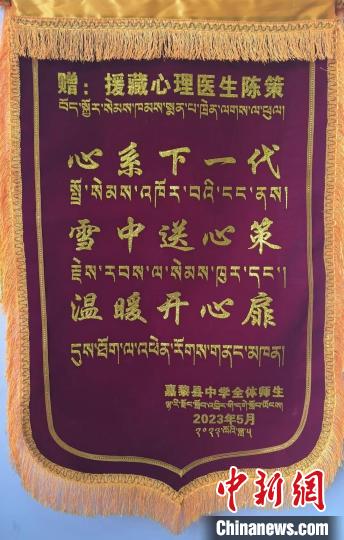 那曲市嘉黎縣中學全體師生贈送陳策的錦旗。受訪者 供圖