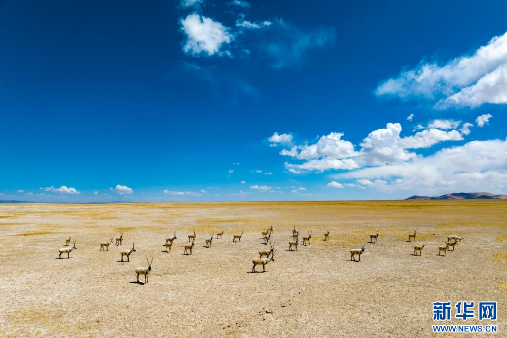 4月14日,在色林錯國家級自然保護區(qū)拍攝的藏羚羊。新華網(wǎng) 旦增努布 攝