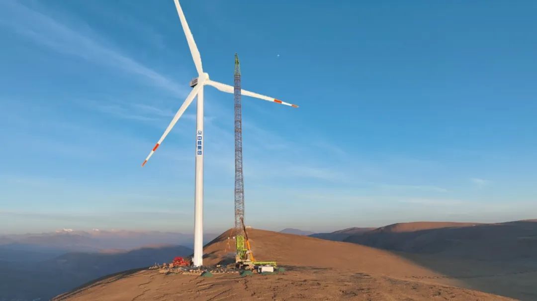 4月20日,在西藏自治區(qū)日喀則市薩迦縣的高原山地上,由中核匯能西藏公司投資、中核二二公司承建的中核集團首個在藏風(fēng)電項目——中核薩迦30萬千瓦風(fēng)光儲一體化項目風(fēng)電場首臺風(fēng)機吊裝完成。根據(jù)測算,該風(fēng)電場區(qū)最高海拔達到5193米,是目前世界上在建海拔最高、單體容量最大的風(fēng)電項目。