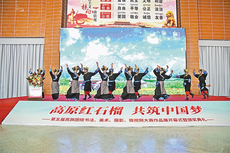 28日,“高原紅石榴 共筑中國夢”第五屆民族團結書法、美術、攝影、微視頻大賽作品展開幕式暨頒獎典禮在西藏自然科學博物館舉行。此次展覽將持續(xù)至5月8日。