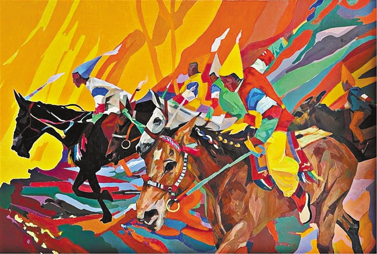 美術二等獎作品《幸福西藏·牧區(qū)印象》。 作者 郭扎