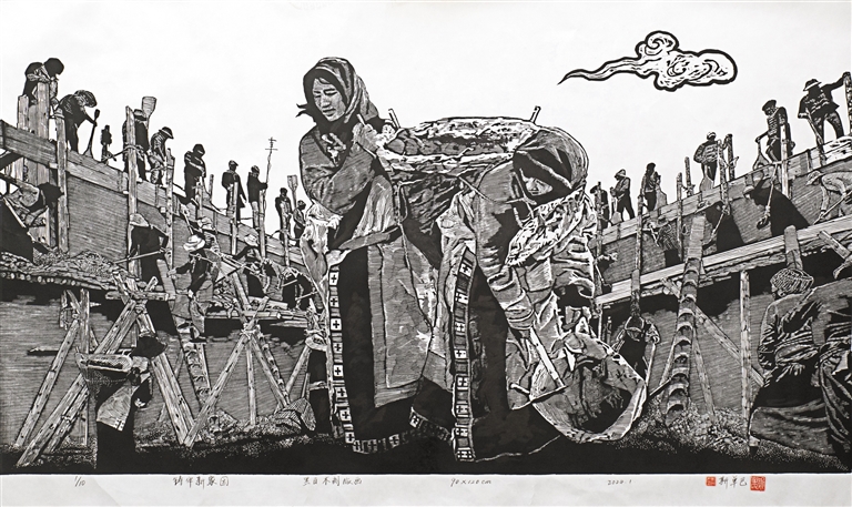 美術二等獎作品《鑄牢新家園》?!∽髡摺∷箚伟?/p>