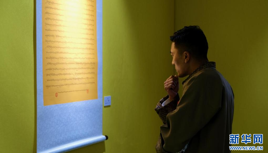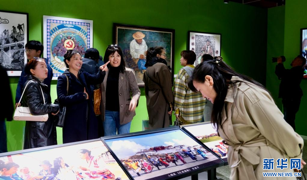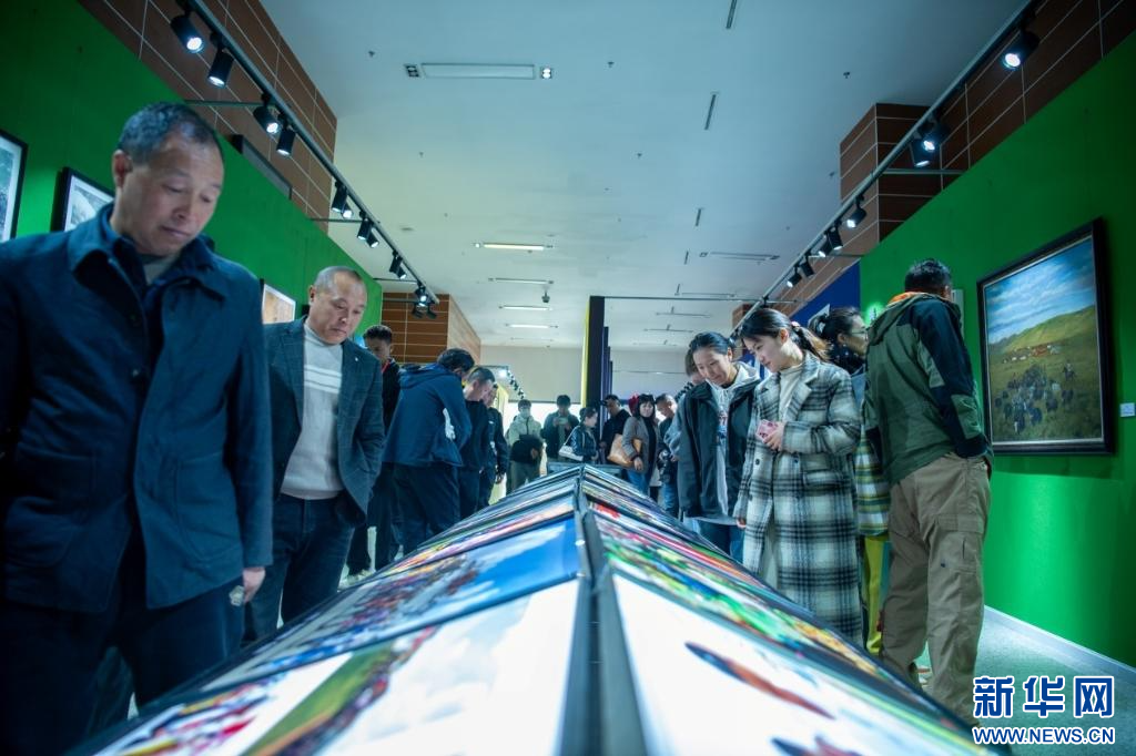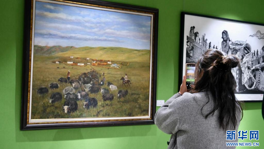 4月28日,第五屆民族團(tuán)結(jié)書法、美術(shù)、攝影、微視頻大賽作品展現(xiàn)場。新華網(wǎng) 旦增努布 攝