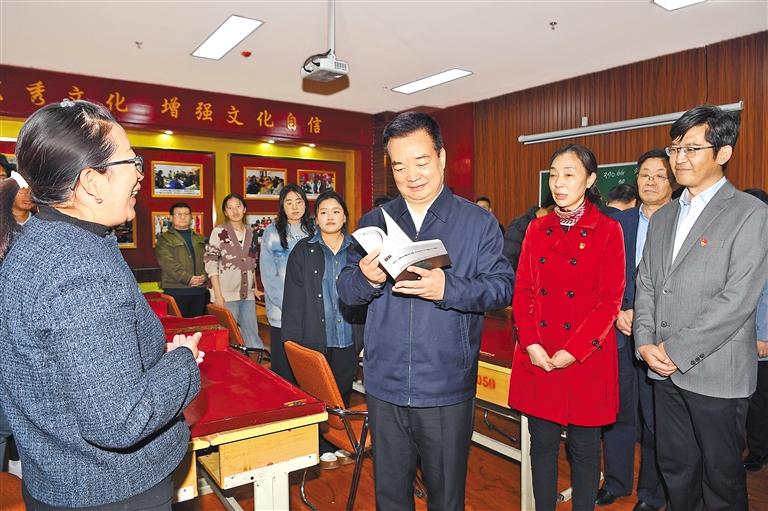 調(diào)研中,王君正指出,師范院校承擔(dān)著為中小學(xué)培養(yǎng)師資的重任,責(zé)任艱巨、使命光榮。要堅(jiān)持正確辦學(xué)方向,自覺用習(xí)近平新時(shí)代中國特色社會(huì)主義思想指導(dǎo)學(xué)校建設(shè)辦學(xué)實(shí)踐,堅(jiān)持不懈用馬克思主義中國化最新成果武裝廣大師生頭腦。堅(jiān)持立德樹人根本任務(wù),圍繞為黨育人、為國育才,遵循教育規(guī)律和人才成長規(guī)律,努力培養(yǎng)德智體美勞全面發(fā)展的社會(huì)主義建設(shè)者和接班人。進(jìn)一步加強(qiáng)師范教育體系建設(shè),聚焦經(jīng)濟(jì)社會(huì)發(fā)展新任務(wù),積極推進(jìn)師范教育教學(xué)改革,突出需求導(dǎo)向,促進(jìn)教育鏈與人才鏈、產(chǎn)業(yè)鏈、創(chuàng)新鏈深度融合,提高辦學(xué)質(zhì)量和辦學(xué)效益。高度重視教師隊(duì)伍建設(shè),把師德師風(fēng)建設(shè)擺在首要位置,提高教師培養(yǎng)培訓(xùn)質(zhì)量,培養(yǎng)造就一支師德高尚、業(yè)務(wù)精湛、結(jié)構(gòu)合理的高素質(zhì)專業(yè)化教師隊(duì)伍。