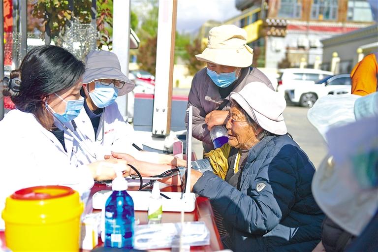 上圖:5月11日,西藏司法警官醫(yī)院聯(lián)合拉薩市城關(guān)區(qū)扎細(xì)社區(qū)黨支部在轄區(qū)開展義診活動,為市民群眾免費(fèi)檢查身體,普及健康知識。 本報(bào)記者 潘多 攝