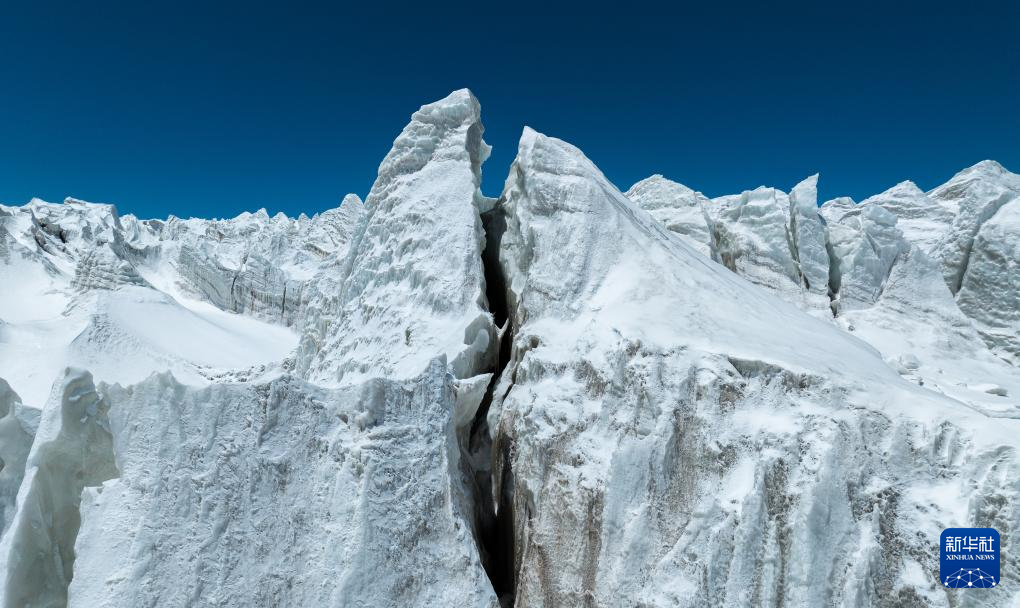 藏色崗日冰川冰塔林(無人機(jī)照片,5月11日攝)。新華社記者 姜帆 攝
