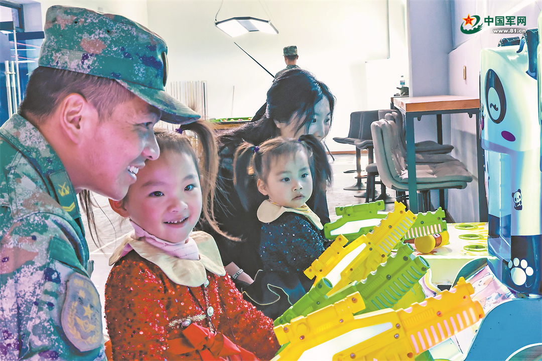 該旅營(yíng)區(qū)環(huán)境已今非昔比,各種設(shè)施日益完善,官兵及其家人在軍營(yíng)團(tuán)聚,臉上滿是幸福。王俊杰夫婦陪同孩子在生活服務(wù)中心玩耍。彭融瑞 攝