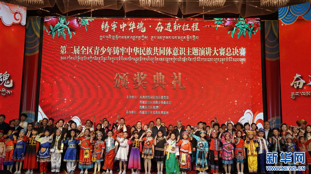 這是第二屆西藏青少年鑄牢中華民族共同體意識主題演講大賽總決賽的頒獎典禮(5月25日攝)。新華社記者 劉洲鵬 攝