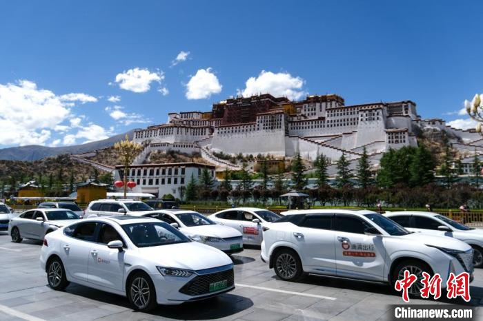 5月28日,懸掛新能源汽車專用號牌(俗稱綠牌)的汽車途經(jīng)拉薩布達拉宮前。中新社記者 江飛波 攝
