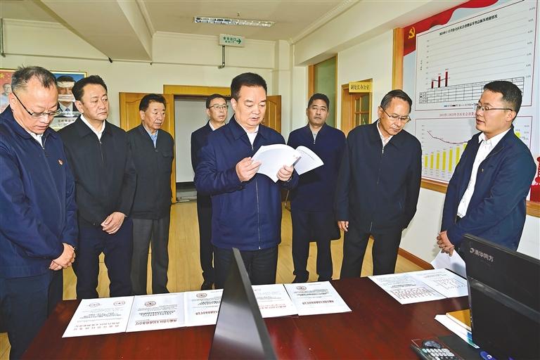 5月29日上午,自治區(qū)黨委書記王君正前往自治區(qū)市場監(jiān)督管理局、自治區(qū)商務廳等單位調研。這是王君正在自治區(qū)商務廳認真聽取全區(qū)商務工作情況介紹。本報記者 旦增西旦 攝