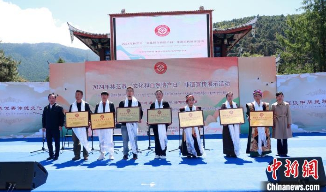 圖為為入選的市級(jí)非遺代表性項(xiàng)目授牌。林芝市融媒 供圖