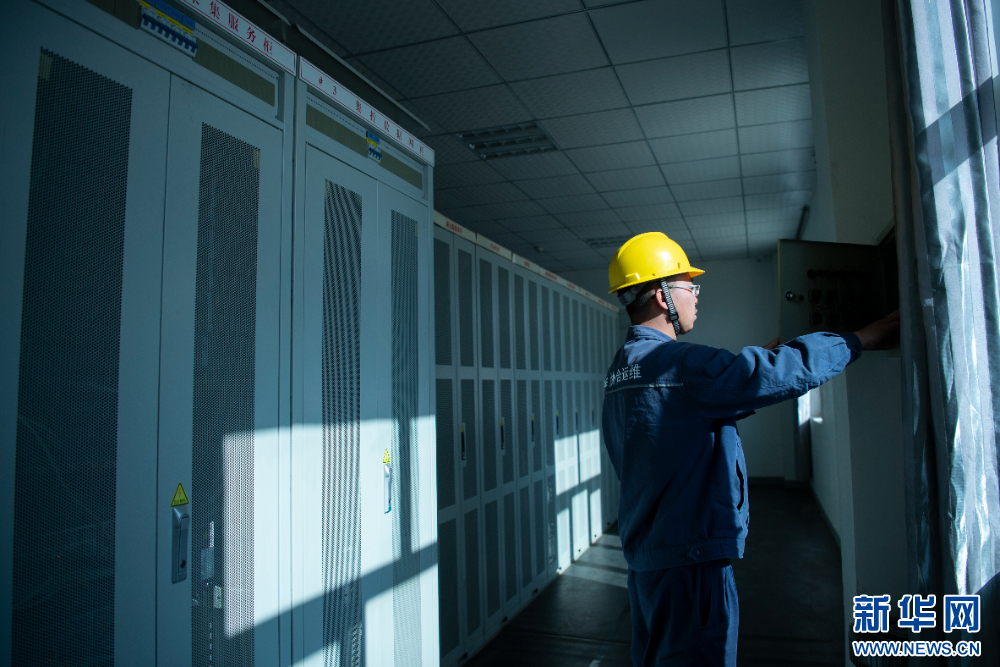 工作人員在110千伏協(xié)合措美縣20兆瓦MW并網光伏電站進行日常檢查。新華網 旦增努布 攝