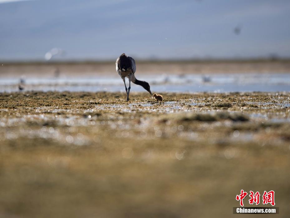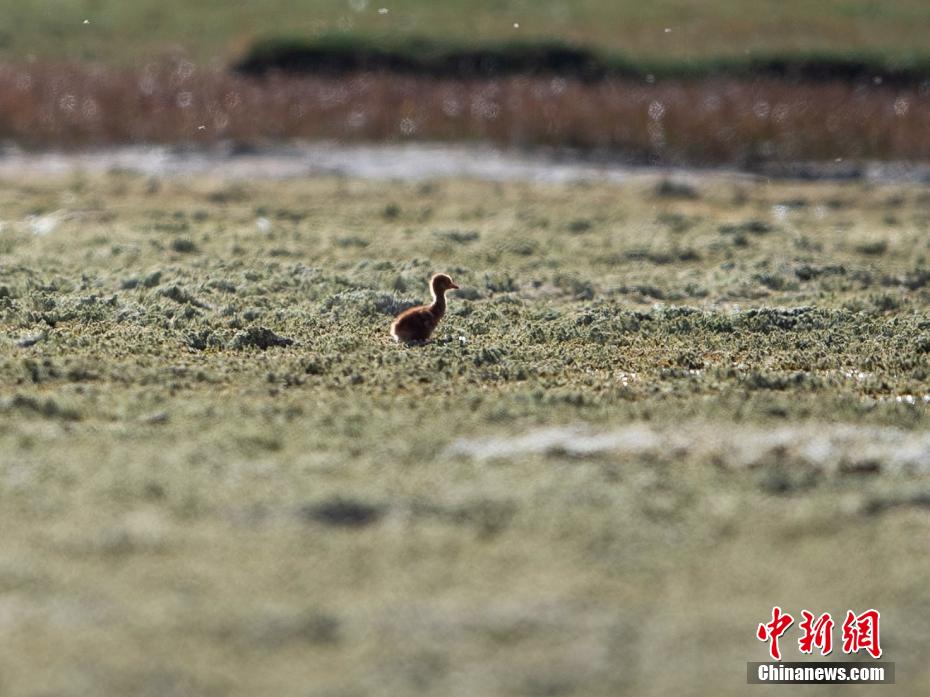 圖為破殼不久的小黑頸鶴在學(xué)習(xí)覓食。貢嘎來松 攝