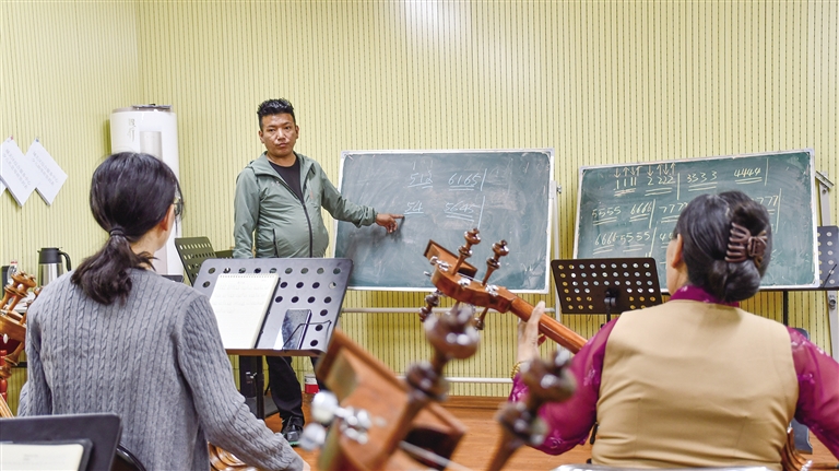 琴聲悠揚,笛聲婉轉……在拉薩市城關區(qū)綜合文化服務中心,非遺民樂培訓班正在如火如荼地進行中。不同年齡段的音樂愛好者在老師的指導下認真練習著各種樂器的演奏技巧。學員們從基礎的指法、節(jié)奏,到復雜的曲目演奏,每個人都全神貫注,沉浸在音樂的世界里。