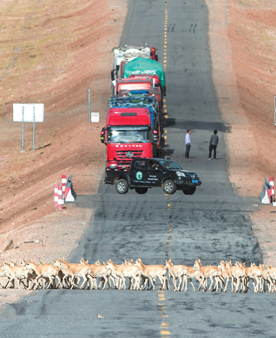 為保證藏羚羊繁衍遷徙順利進行,青藏鐵路設置33處遷徙通道,青藏公路為藏羚羊遷徙采取臨時交通管制措施,青藏線沿線各保護站協(xié)助藏羚羊繁衍遷徙……在青藏線上,順利遷徙的藏羚羊群,展現(xiàn)著人與自然和諧共生的生動畫面。