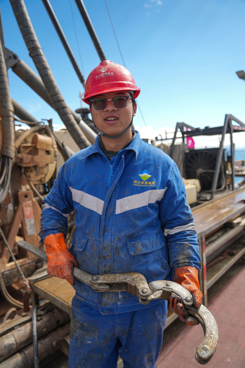 7月11日,鉆工彭小紅在拖拽主鋼繩。新華社記者 晉美多吉 攝