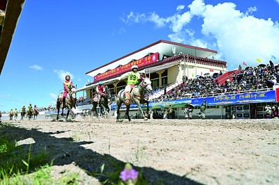 據(jù)了解,今年主辦方從青海等地邀請了特色高原馬種前來展示?;顒蝇F(xiàn)場,記者看到,騎手們身著民族服飾,英姿颯爽;駿馬裝飾五色綢帶,躍躍欲試;觀眾扶老攜幼,笑逐顏開。今年的賽馬節(jié)還新增了馬上刀術(shù)、馬上烏爾朵、騎馬射擊、騎馬拾哈達(dá)等四項(xiàng)賽馬競技活動。