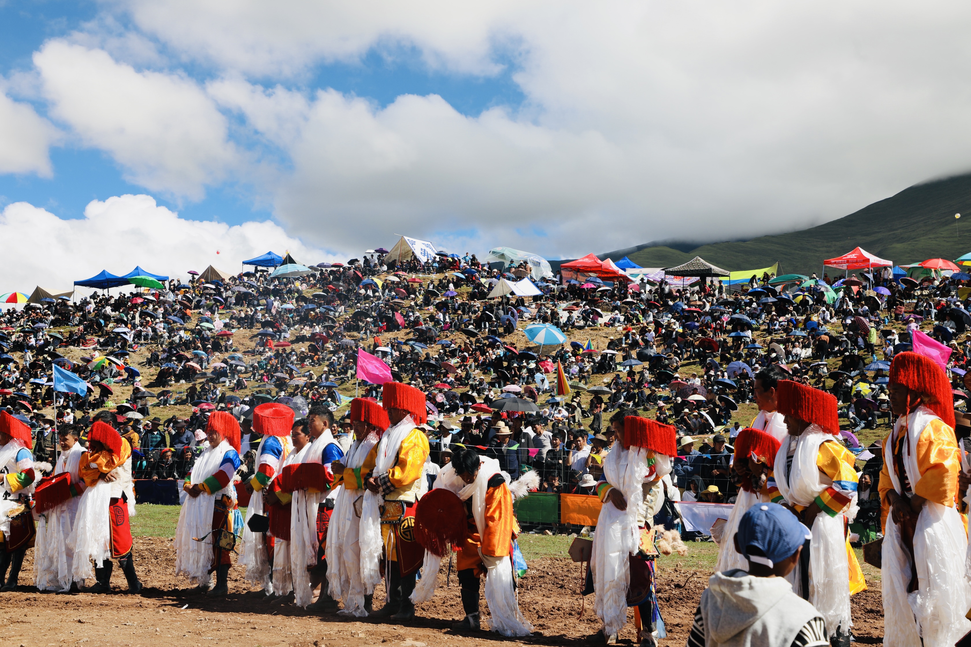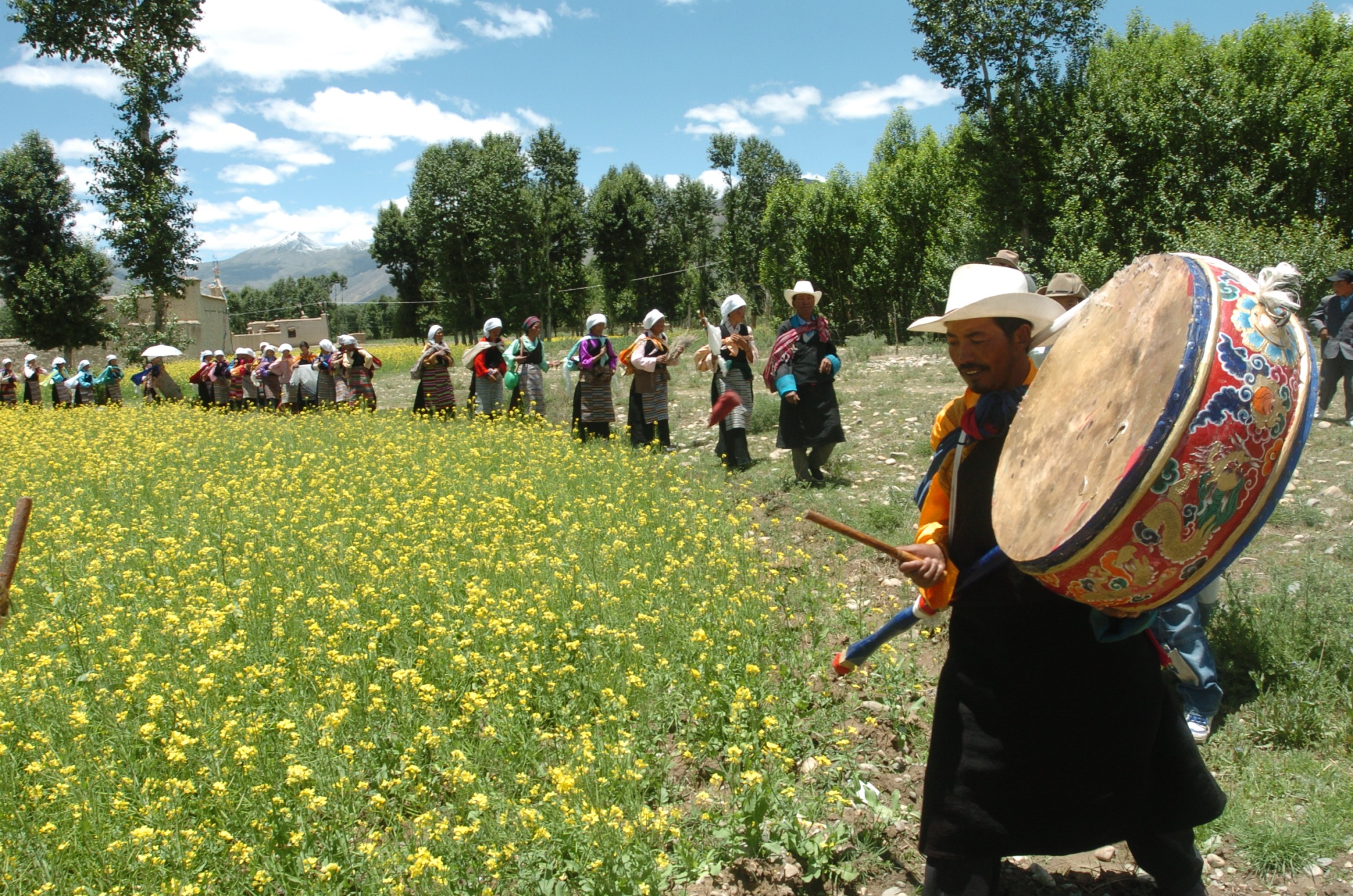 林周,藏語譯為“天然形成的沃土”,被譽(yù)為“拉薩的后花園”、“拉薩的糧倉”,天然肥沃的土壤把林周縣分為兩種特殊的地貌,草原和耕地,養(yǎng)育了眾多的林周人。圖為林周縣群眾慶?!巴?jié)”。