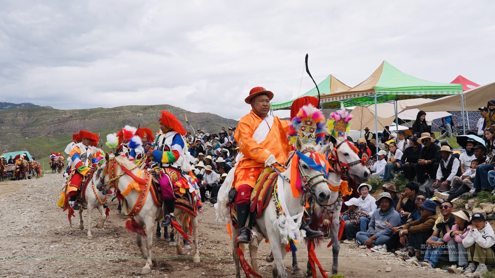 在林周縣邊交林鄉(xiāng)當(dāng)杰村“望果節(jié)”活動現(xiàn)場,隨著激昂的《運(yùn)動員進(jìn)行曲》,當(dāng)杰村“平措林望果節(jié)”活動拉開帷幕,38名馬術(shù)運(yùn)動員、38名射箭運(yùn)動員在2萬多名觀眾的歡呼聲中邁入現(xiàn)場。圖為賽馬選手參加射箭比賽。
