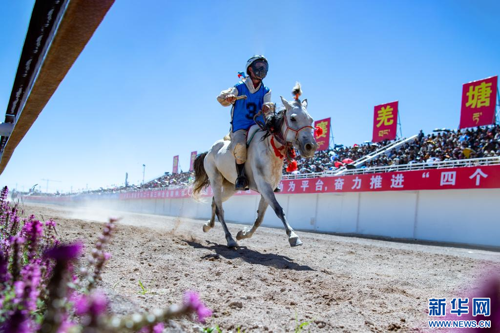 8月11日,騎手在場名馬冠軍比賽中。新華網(wǎng) 旦增努布 攝