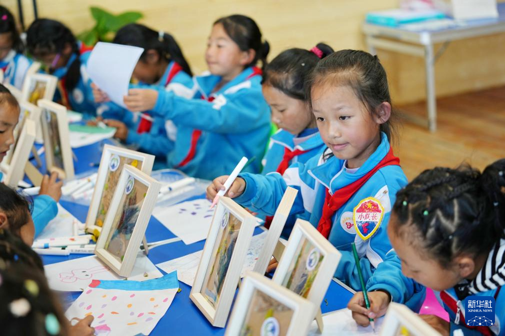 8月15日,拉魯小學(xué)的學(xué)生在拉魯濕地國家級(jí)自然保護(hù)區(qū)管理局科普小教室里進(jìn)行生態(tài)主題繪畫。