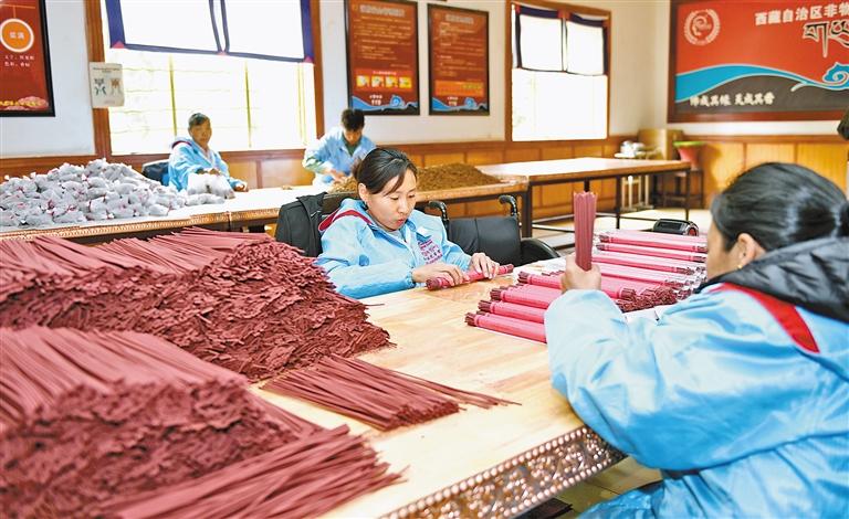 2008年6月,藏香制作技藝被列入國家級非物質(zhì)文化遺產(chǎn)名錄。經(jīng)過多年發(fā)展,藏香已成為西藏自治區(qū)極具發(fā)展?jié)摿Φ奶厣a(chǎn)業(yè)之一,越來越多的藏香加工廠吸納當?shù)厝罕娋蜆I(yè),帶動群眾增收致富。