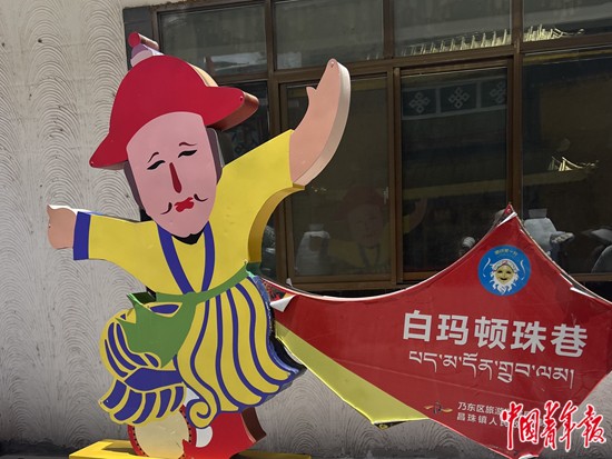 8月6日,西藏自治區(qū)山南市乃東區(qū)昌珠鎮(zhèn)扎西曲登社區(qū),以藏戲傳承人名字命名的街巷。白瑪頓珠是雅礱扎西雪巴藏戲的傳承人,成功恢復了中斷20多年的雅礱扎西雪巴藏戲表演技藝,對藏戲藝術的傳承和發(fā)展作出了重要貢獻。中青報·中青網記者 余冰玥/攝