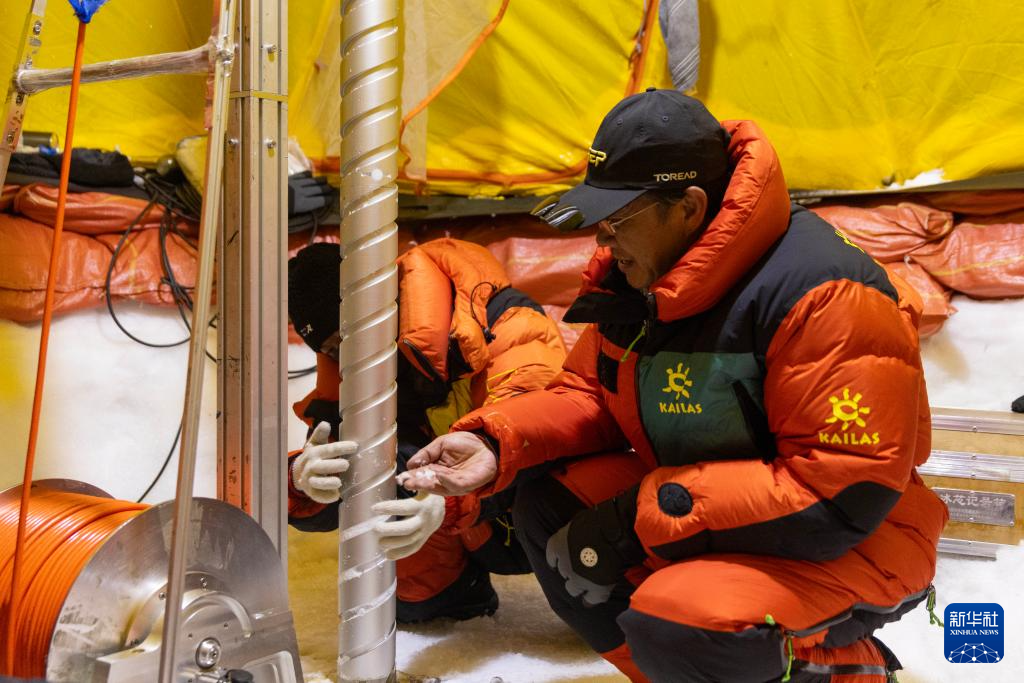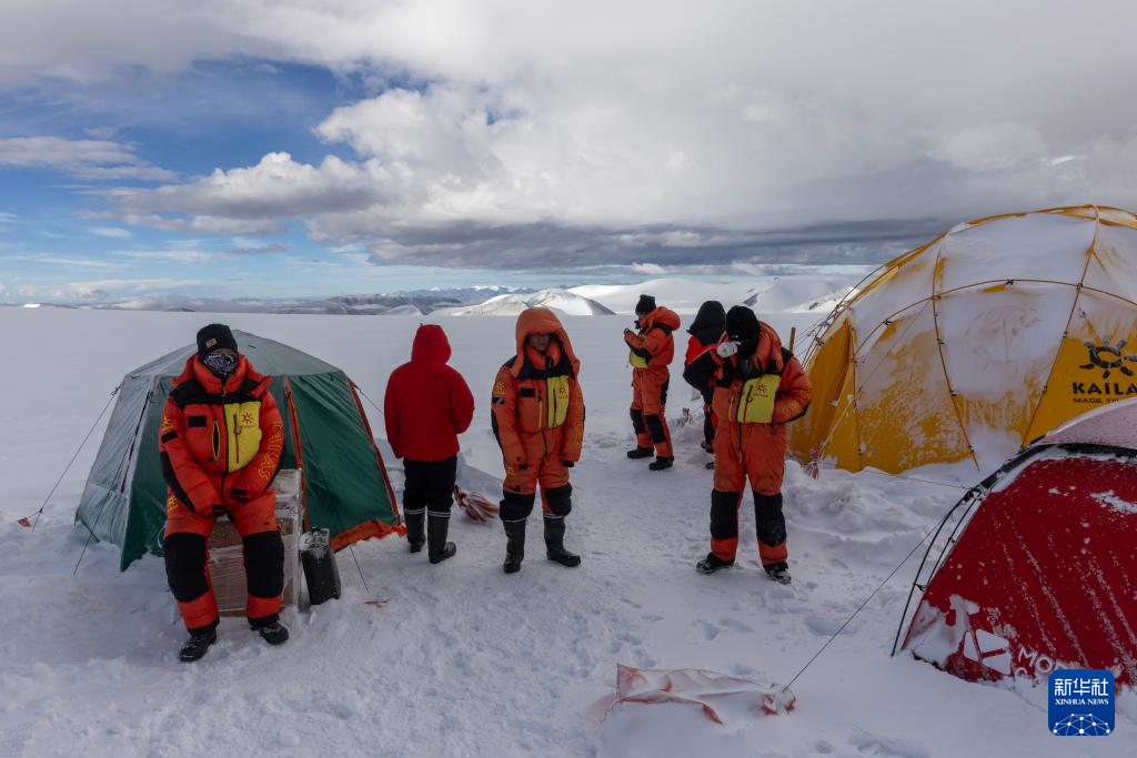 9月11日晚,由中國科學院青藏高原研究所副所長徐柏青研究員帶領(lǐng)的科考團隊在普若崗日冰原頂部海拔6100米的“Dome.C”點開機鉆取冰芯。