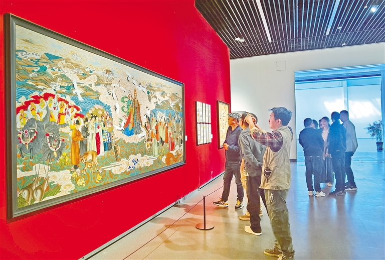 圖為川藏兩地的美術(shù)家們和觀(guān)眾在參觀(guān)畫(huà)展。記者 潘璐 攝