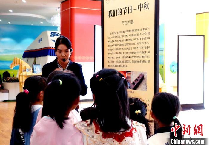 圖為講解員為兒童講解中秋節(jié)的起源以及傳統(tǒng)習(xí)俗。拉巴卓瑪 攝