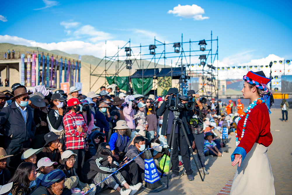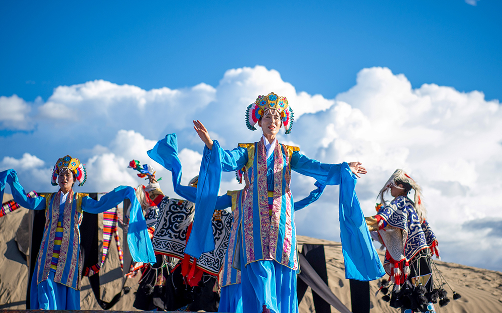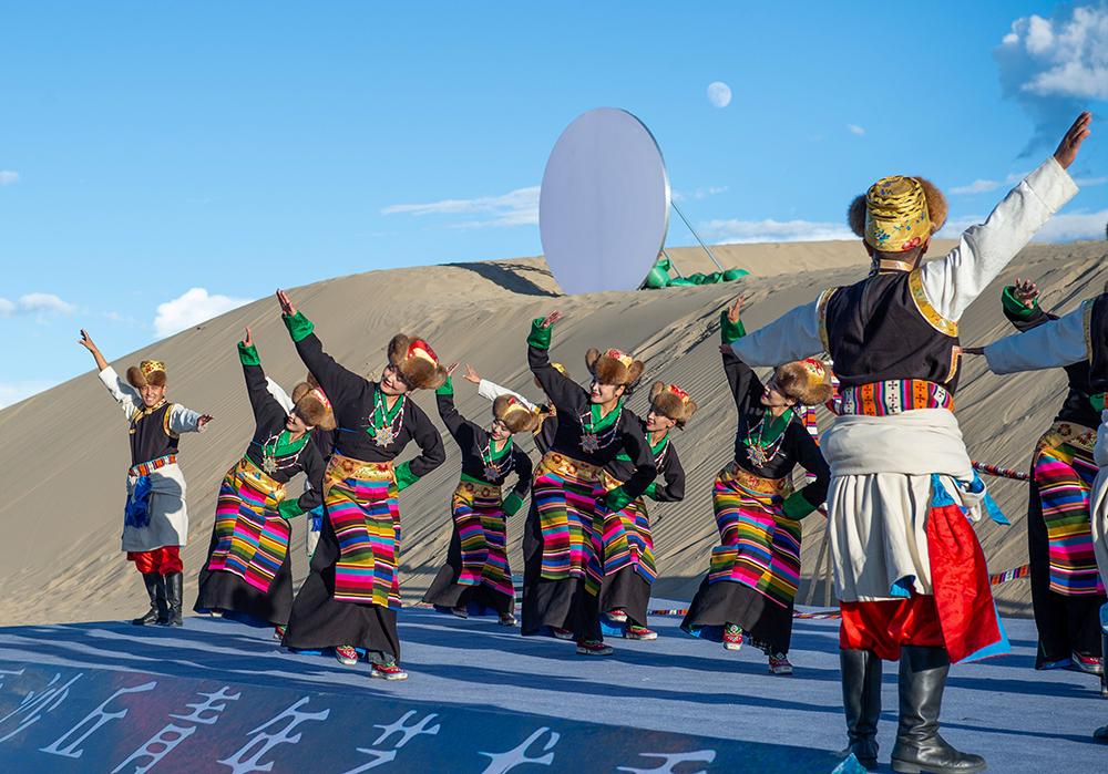 西藏山南首屆“高原沙丘青年藝術(shù)季”非遺歌舞展演現(xiàn)場(9月15日攝)。新華網(wǎng) 旦增努布 攝