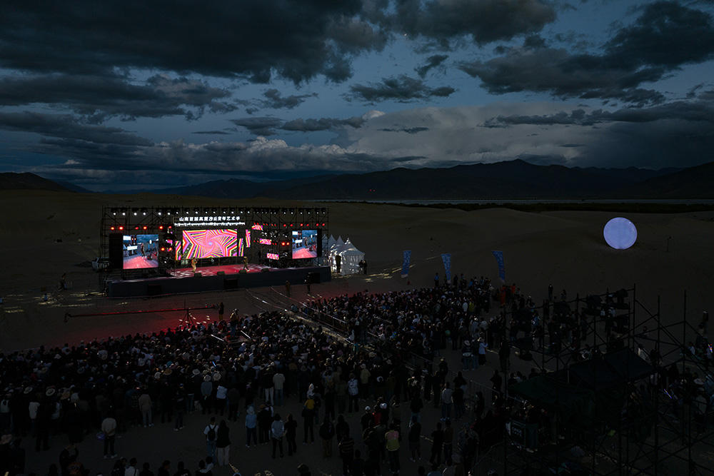 西藏山南首屆“高原沙丘青年藝術(shù)季”音樂會現(xiàn)場(無人機(jī)照片,9月15日攝)。新華網(wǎng) 旦增努布 攝