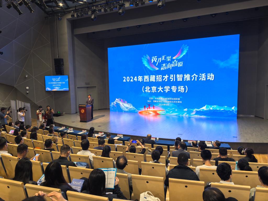 “英才匯聚·志向高原”2024年西藏招才引智推介活動9月27日走進北京大學、清華大學,圍繞文化旅游、清潔能源、綠色工業(yè)、高原特色農(nóng)牧業(yè)、藏醫(yī)藥、高原輕工業(yè)等重點產(chǎn)業(yè)和民生領(lǐng)域,推介高層次人才引進需求303個。