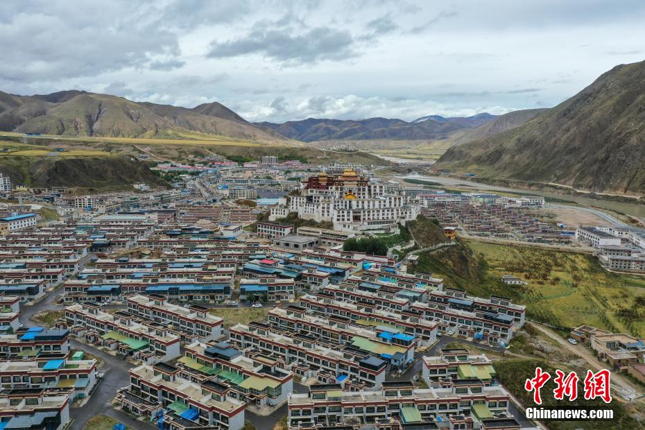 9月27日,西藏那曲市索縣的贊丹寺全景。贊丹寺全稱為索甘丹培杰林寺,始建于1667年,屬于藏傳佛教格魯派,寺廟分為白宮和紅宮。寺內珍藏大量壁畫、藏經印冊,具有很高的文物價值和藝術價值。因為修建在雅拉多山頂,不管是遠看還是近看都神似布達拉宮,故而也被稱為“小布達拉宮”。(無人機照片)