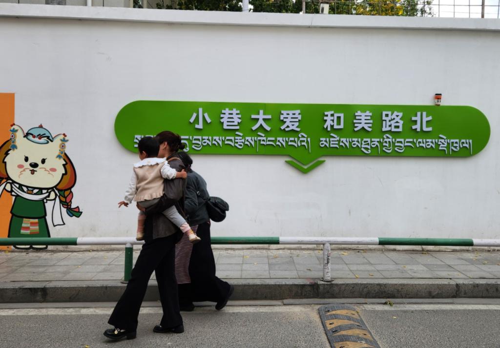 配合路政部門把洽瑪崗路改為單行道,讓街道靜下來(lái);協(xié)同三大運(yùn)營(yíng)商,把街上縱橫交錯(cuò)的“飛線”收進(jìn)沿街橋架,還行人一片藍(lán)天;對(duì)接專業(yè)設(shè)計(jì)團(tuán)隊(duì),以本地犬種拉薩阿普索犬設(shè)計(jì)社區(qū)IP形象“嘎嘎”(意為快樂(lè)),街角的墻繪、樹(shù)上的引導(dǎo)牌、商戶的門臉上都能看到這只可愛(ài)的小狗……社工旦增晉美對(duì)社區(qū)的變化如數(shù)家珍。