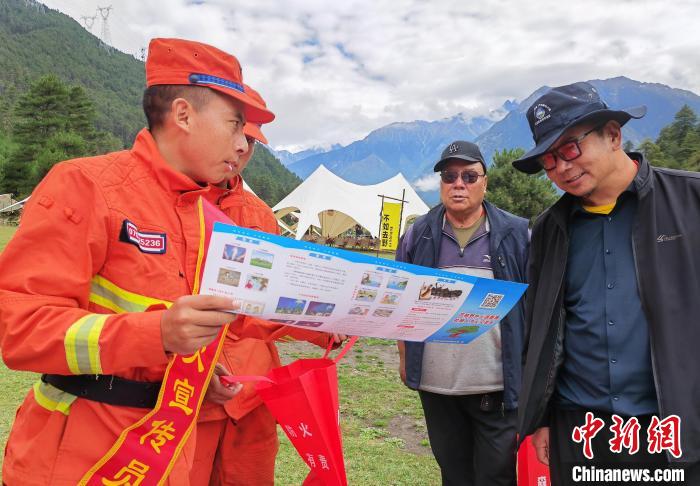 “同志您好,秋季氣候干燥,景區(qū)游玩一定要杜絕攜帶火種上山。”在波密縣嘎朗湖、崗云杉林景區(qū),森林消防員向游客們宣傳森林防滅火常識,提供助民幫困服務,倡導游客安全出行、文明旅游。