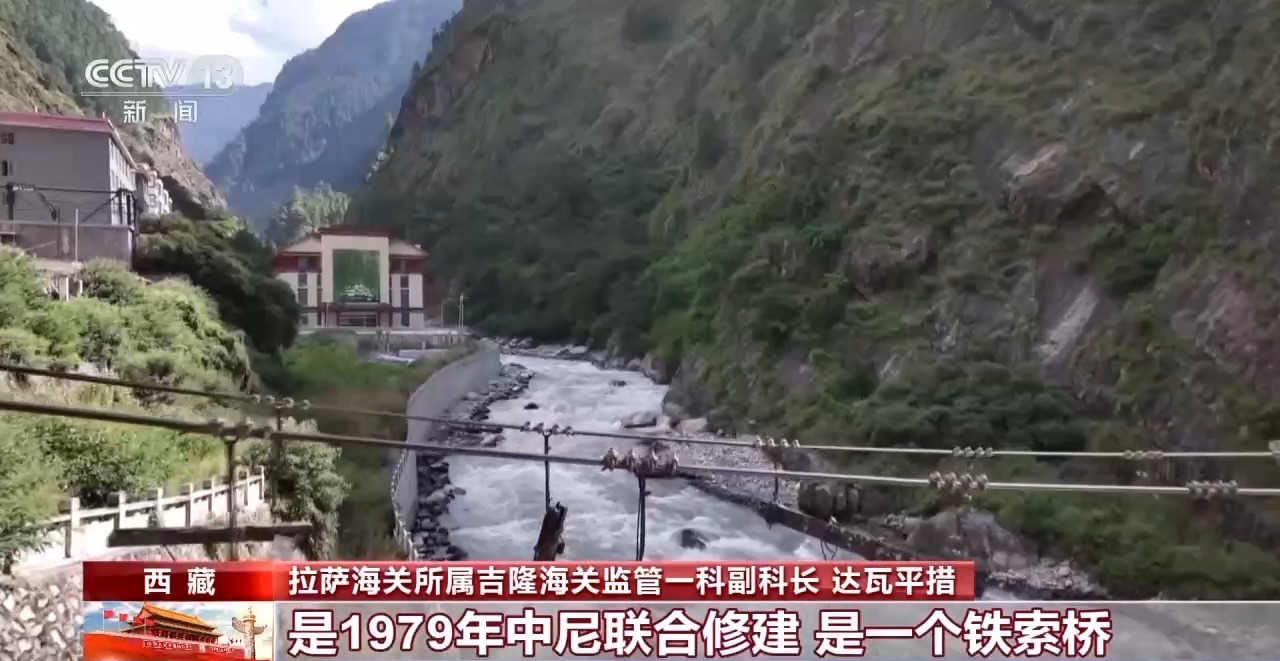 拉薩海關(guān)所屬吉隆海關(guān)監(jiān)管一科副科長 達(dá)瓦平措:我們的第一代熱索橋,是1979年中尼聯(lián)合修建,是一個鐵索橋。第二代熱索橋是一個木板橋,因為自然災(zāi)害頻發(fā),原址看不到了。