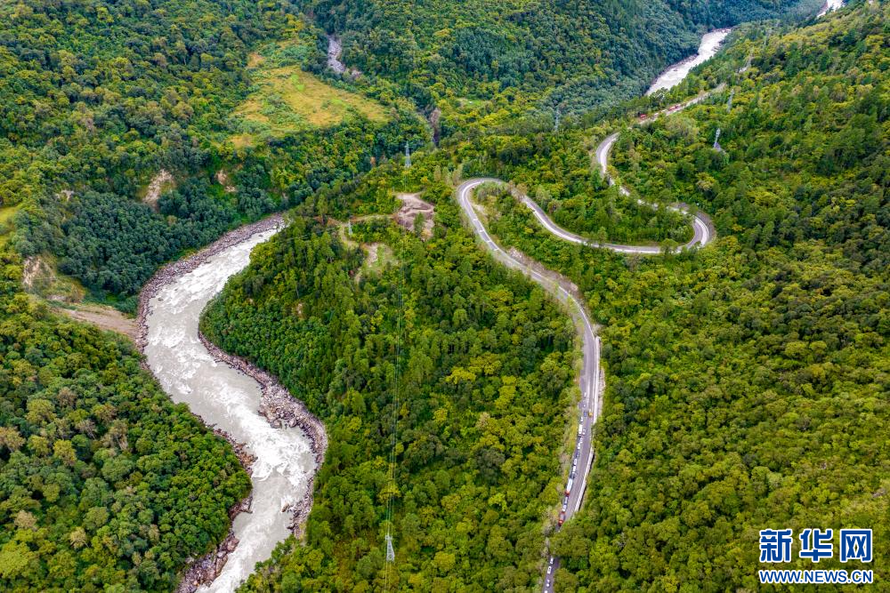 10月11日,在西藏林芝市波密縣境內(nèi)拍攝的川藏公路(無人機照片)。新華網(wǎng) 旦增努布 攝