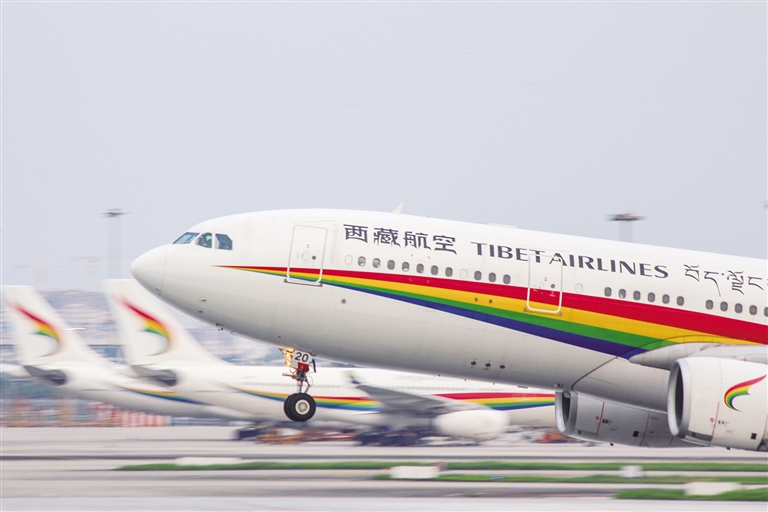 西藏航空A330飛機起飛。圖由陳榛煒提供