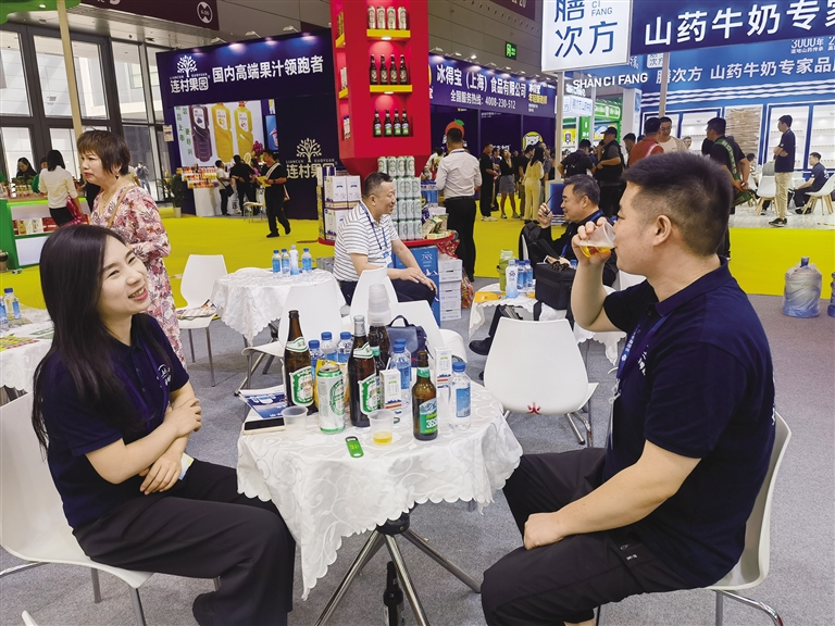 在“拉薩好物”館內(nèi),來自拉薩的參展企業(yè)代表們正通過產(chǎn)品展示、品鑒、交流等多種方式,積極向國內(nèi)外客商推介拉薩的優(yōu)質(zhì)產(chǎn)品。拉薩啤酒有限公司的銷售經(jīng)理肖舒熱情地向來賓介紹著公司的主打產(chǎn)品——拉薩啤酒,并邀請大家品嘗。西藏高原之寶有限公司的展臺前,擺放著各種以牦牛奶為原料的乳制品和保健品,引來不少消費者咨詢和購買。